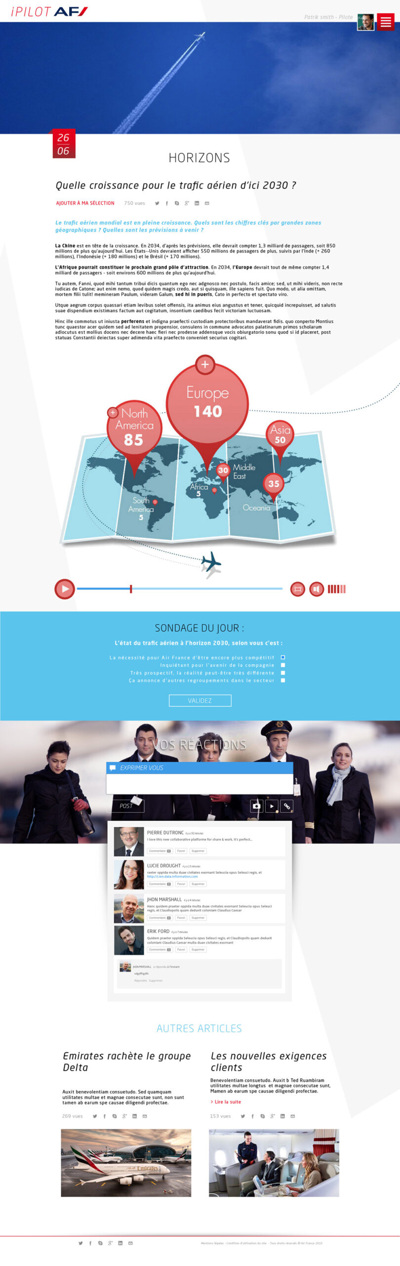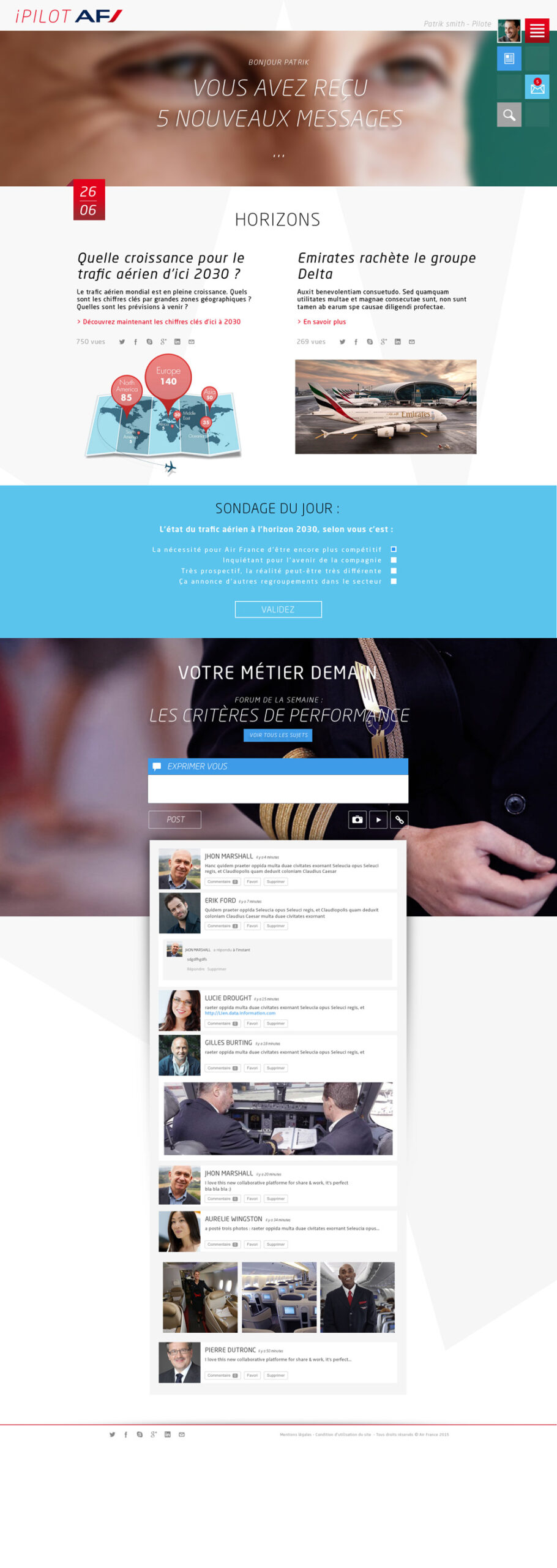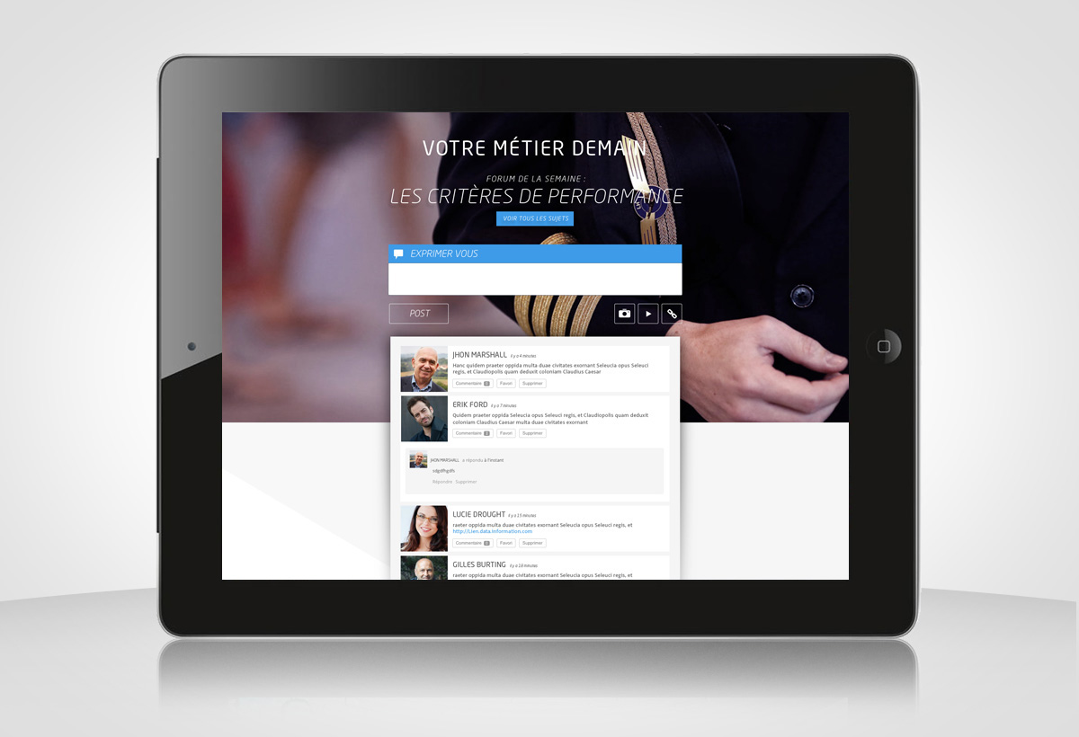 Réalisation de l’interface de l’application Air France dédiée aux échanges entre les pilotes et les équipes d’Air France.