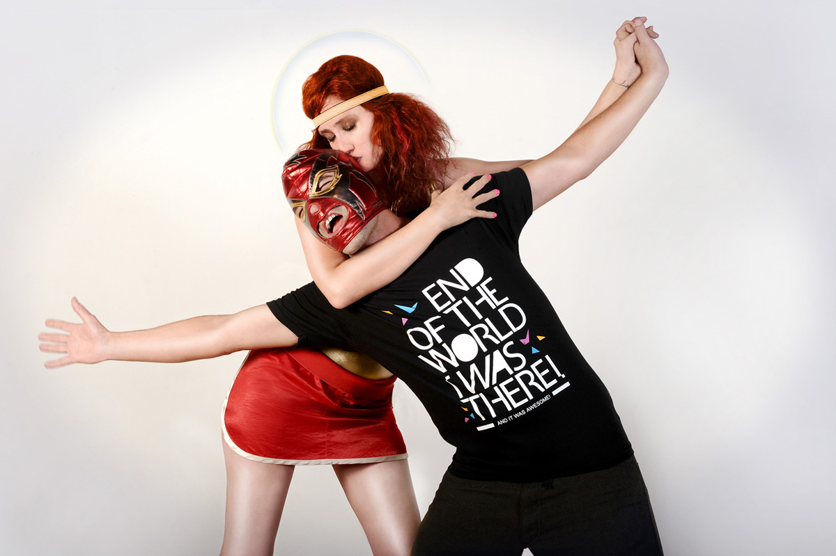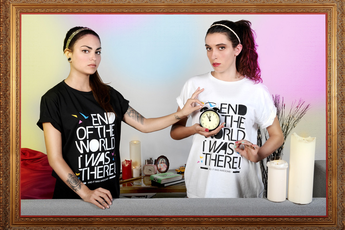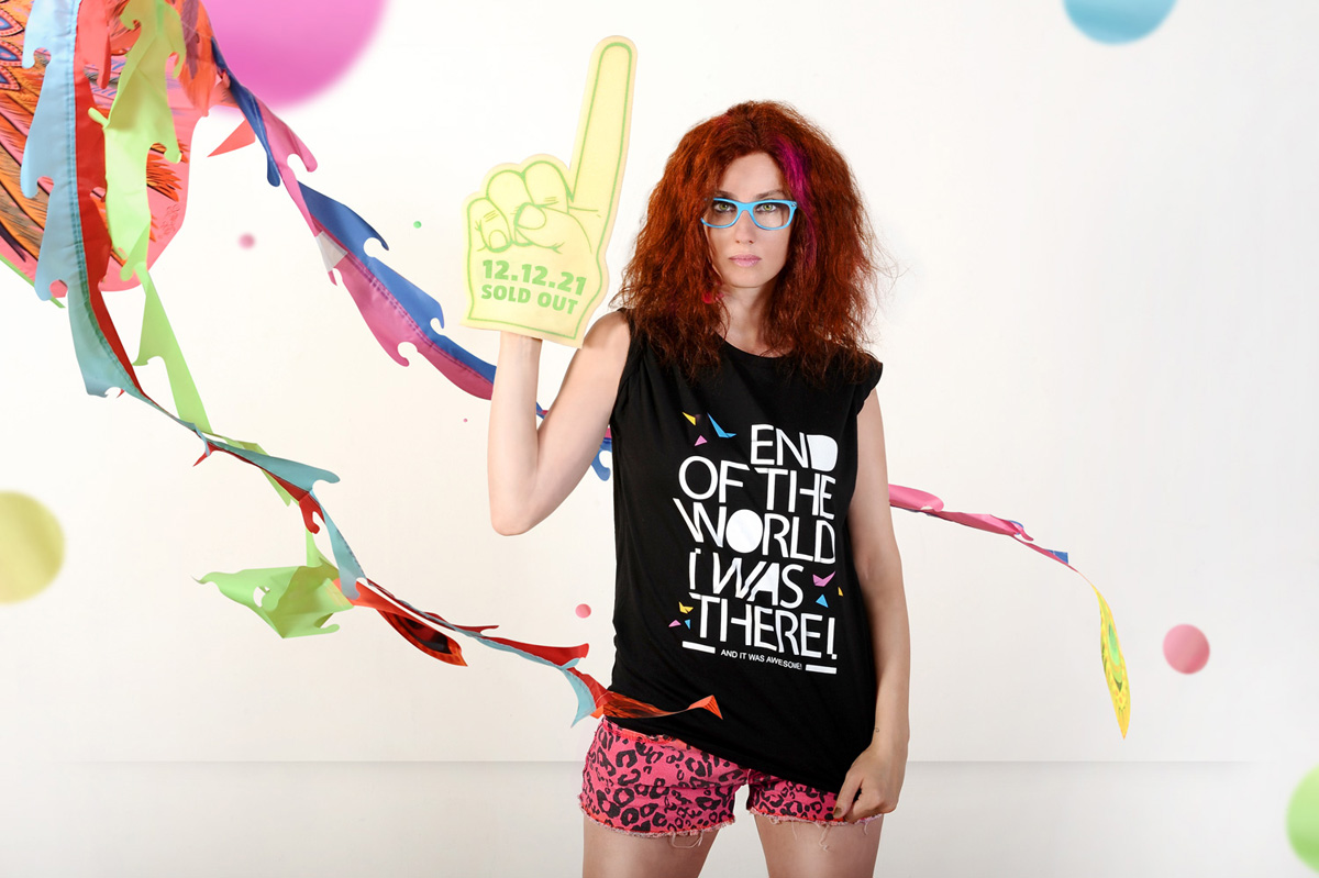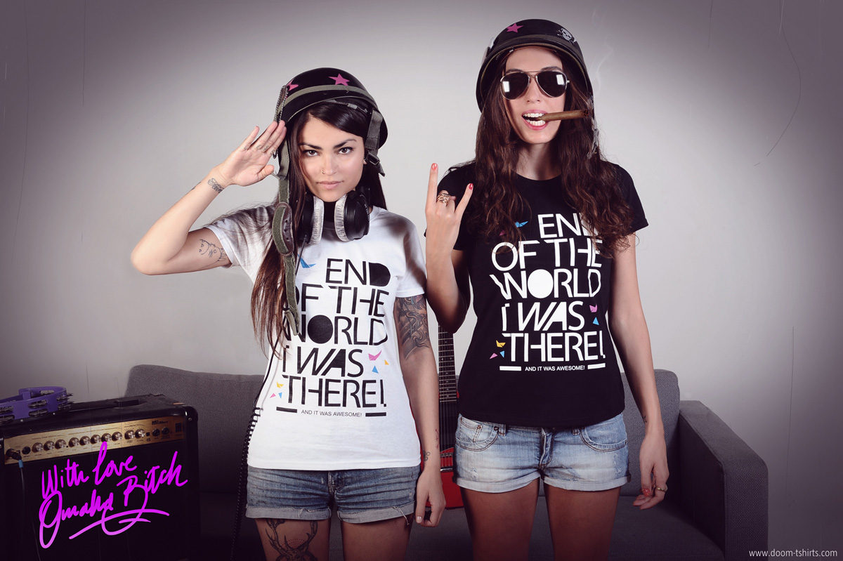 Évidement la fin du monde n’a pas eu lieu et c’est bien là l’idée de ces slogans : « End Of The World I Was There ! And It Was Awsome ! »